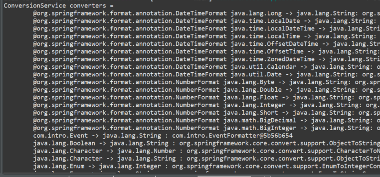 등록되어 있는 Converter, Formatter 를 보고 싶으면 conversionService 를 출력해보시면 됩니다.