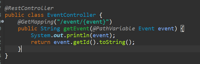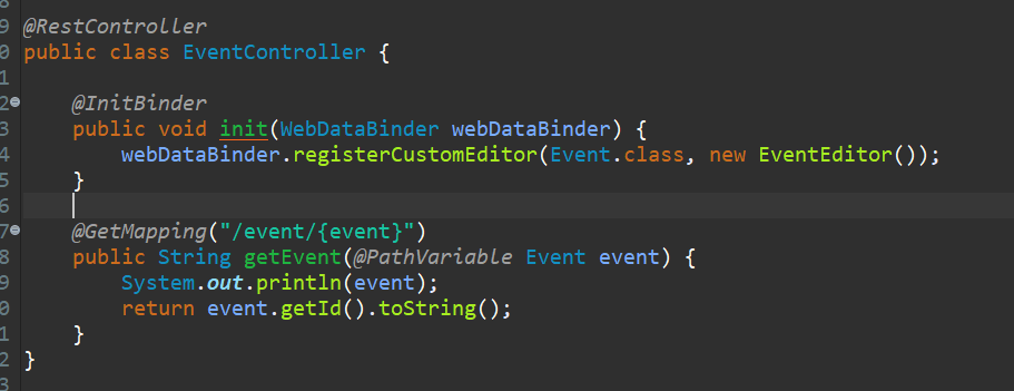 get 요청으로 보내진 1 이라는 숫자는 아직 Event 객체로 매핑될 수 없기 때문에 테스트 수행시 에러가 발생할 것입니다.