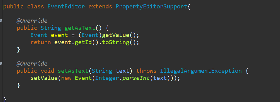 여기서 getAsText, SetAsText 는 문자열을 다른 타입으로 바꿔주거나 다른타입을 문자열로 바꿔주는 기능을 제공합니다.