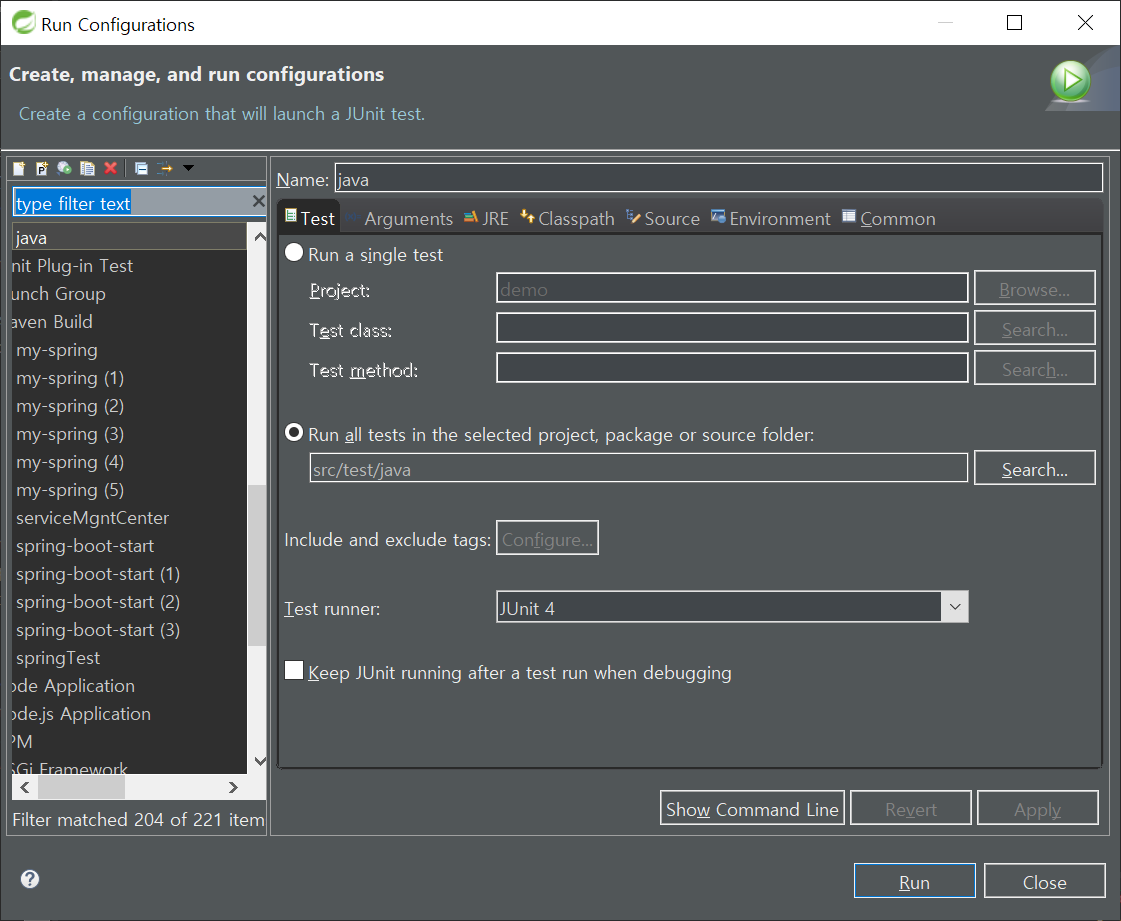 **** 이때 혹시 "no test found with test runner junit5" 이런 에러가 나는 경우