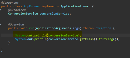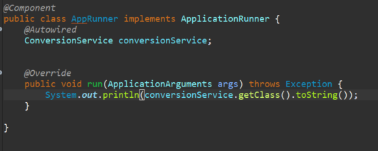 이렇게 주입되는 ConversionService의 타입을 찍어보면 WebConversionService를 출력해주는 것을 볼 수 있습니다.