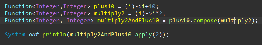 compose 메소드의 경우, 매개변수로 주어진 함수를 먼저 수행하고 그 다음 앞의 것을 수행합니다.