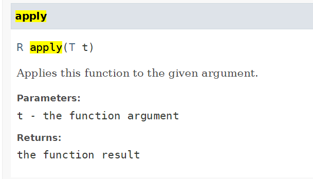 그중에서도 Function이라는 인터페이스의 apply 라는 메소드에 대해 보겠습니다.
