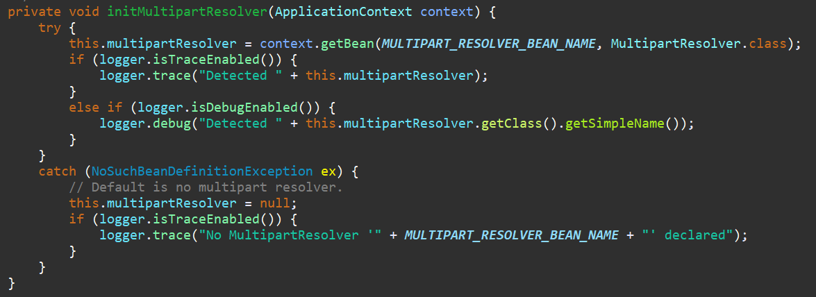 기본 DispatcherServlet에는 아무런 MultipartResolver를 등록하지 않습니다. Spring boot를 사용하는 사람들은 기본적인것이 하나 등록돼있습니다. 이 Resolver가 StandardServletMultipartResolver입니다.