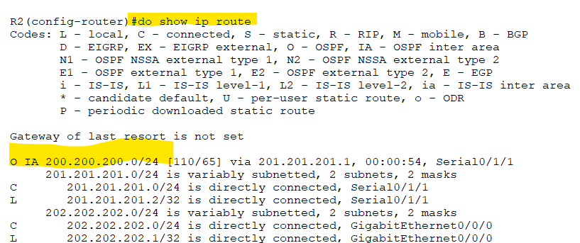 OSPF 로 설정된 영역이 O IA로 보입니다.
