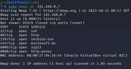 식별된 대상에 사용중인 서비스를 확인하기위해 포트스캔을 시작하겠습니다.