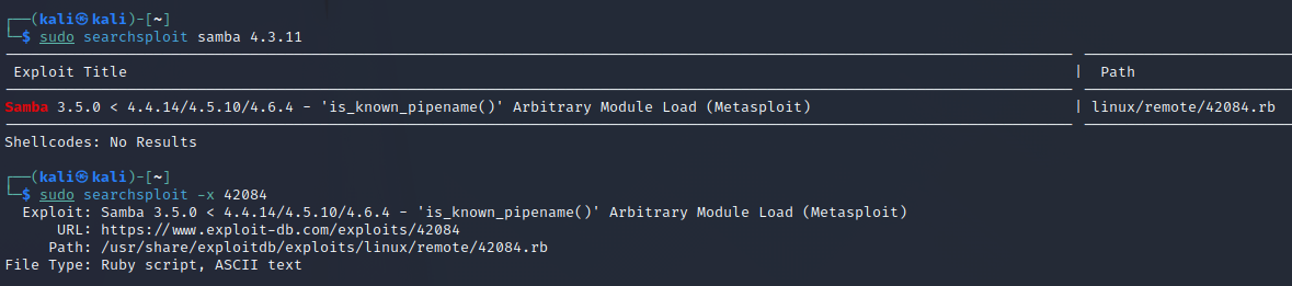 또는 searchsploit 명령어를 이용할 수 있습니다.