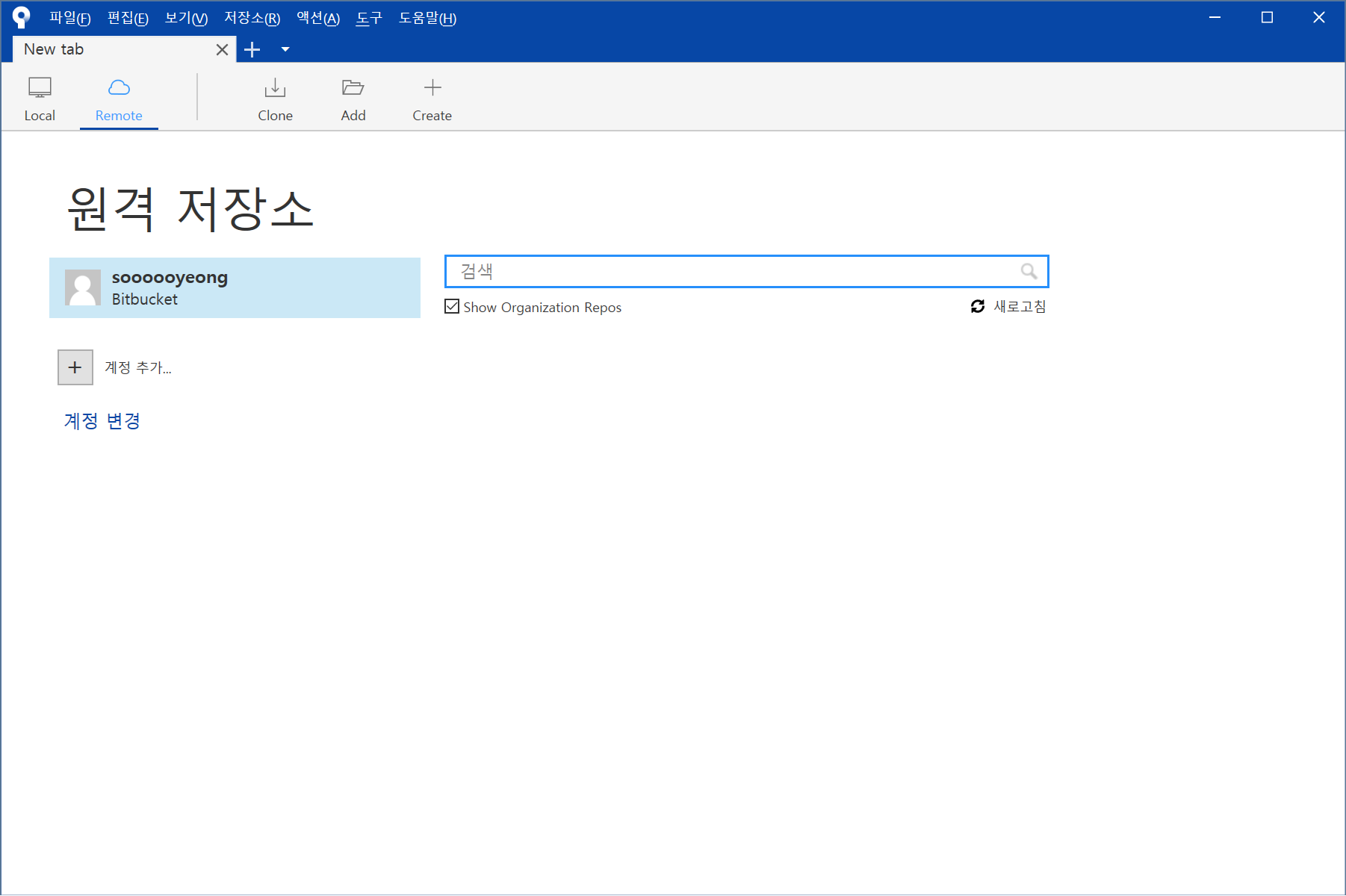 저희는 github 계정과 연동하여 사용할 예정이기 때문에 계정 추가 버튼을 누른 후 github 계정을 추가하고 비밀번호/ 또는 OAuth인증을 통해 인증을 진행하시면 됩니다.