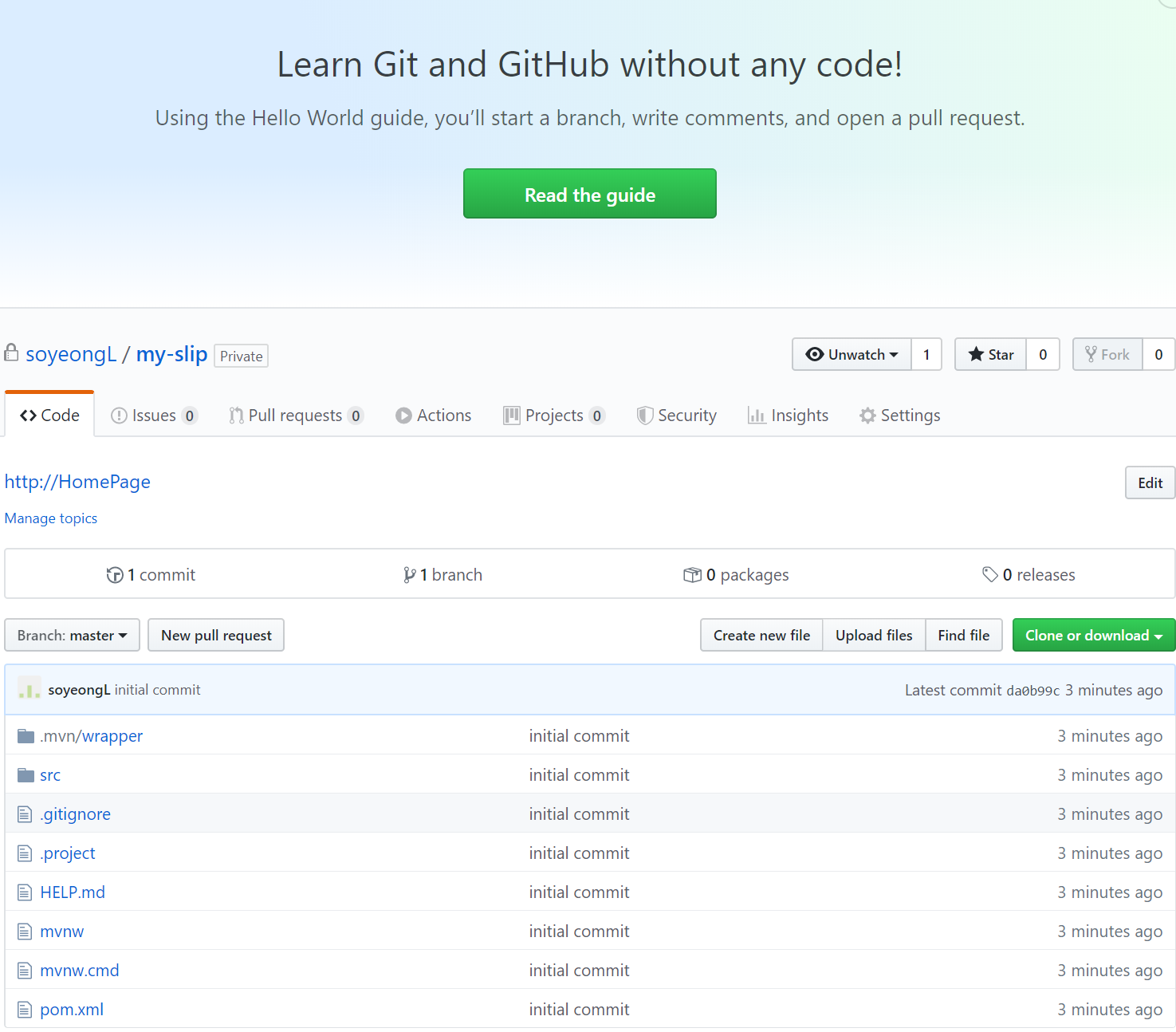 이렇게 push한 후에는 해당 github에 소스가 올라갔음을 확인할 수 있습니다.