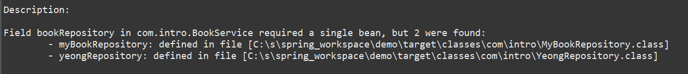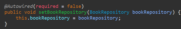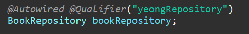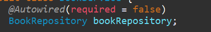 위의 예처럼 처리하면 BookRepository 는 의존성 주입은 되지 않은 채로 Bean이 등록됩니다.