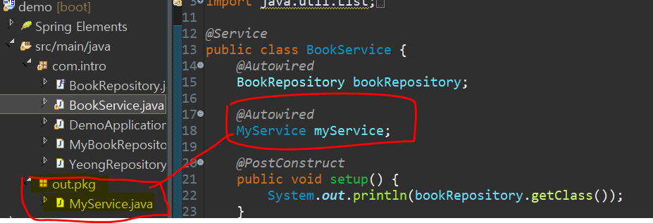 하지만, 패키지밖에 있는 것은 되지 않습니다. 따라서 Bean으로 등록되지 않아 @Autowired를 수행할 수 없습니다.