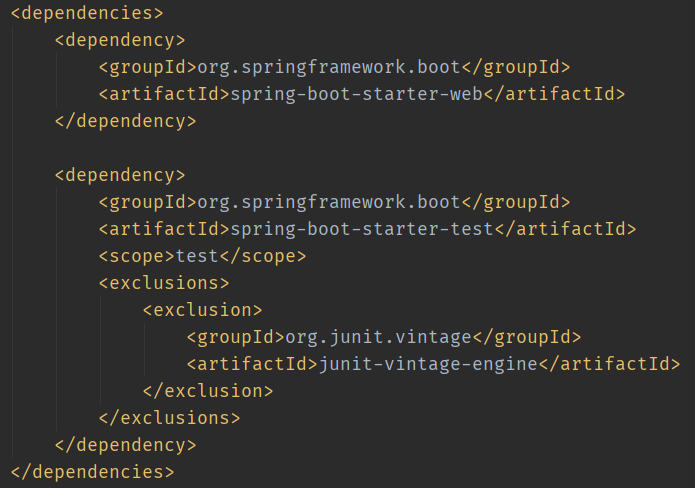 저희는 현재 기본적인 프로젝트를 추가했으므로 아래와 같은 dependency를 가진 pom.xml을 볼 수 있습니다.