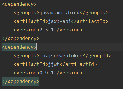 JWT 사용을 위해서 dependency를 아래와 같이 pom.xml에 추가해줍니다.