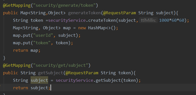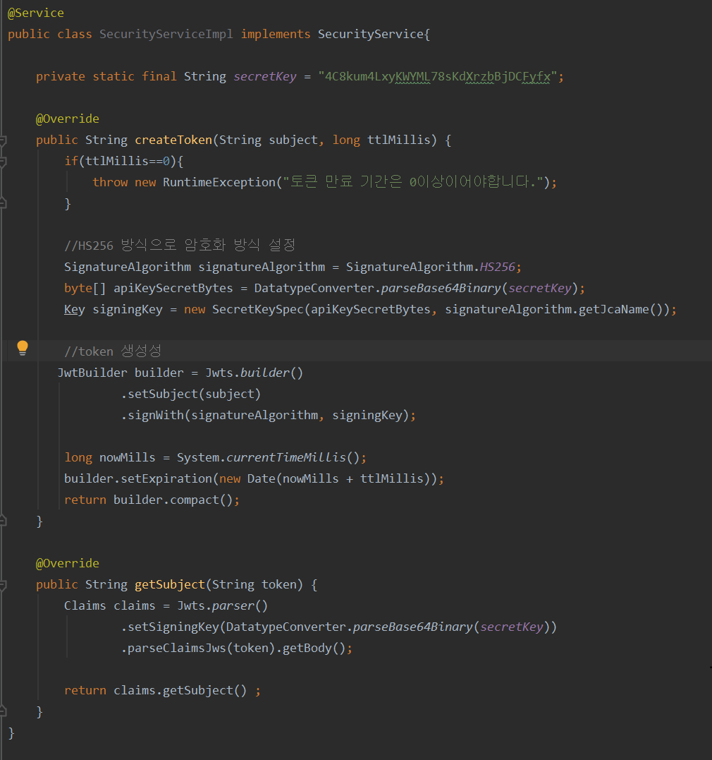 토큰을 생성하고 토큰을 가진 사용자를 확인하는 메소드를 구현합니다.