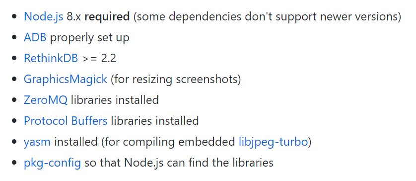 우선 node js, adb, rethinkdb 를 설치해주고 나서