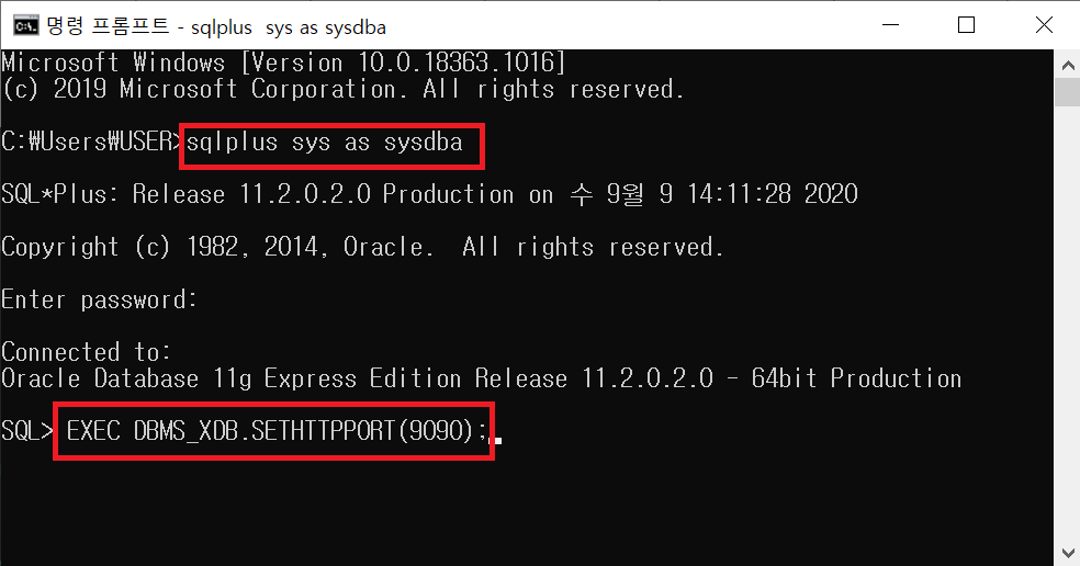 window cmd 창을 열고 아래와 같은 명령어를 입력해주면 포트를 9090으로 변경할 수 있습니다.
